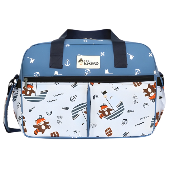 ~ Pada bagian depan tas, terdapat kantung yang dapat disisipkan untuk menaruh saputangan bayi, tissue basah atau yang lainnya